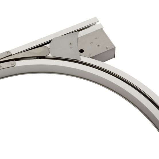 Guldmann Switch track modules are designed for installation in places where it is necessary or desirable to run rails in different directions. These modules are electrically operated electrically and can be embedded in the ceiling so that only the bottom surface is visible.